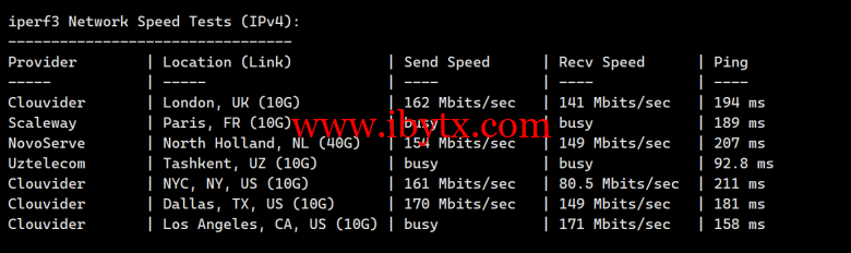 Iperf3欧美地区的节点的测试: