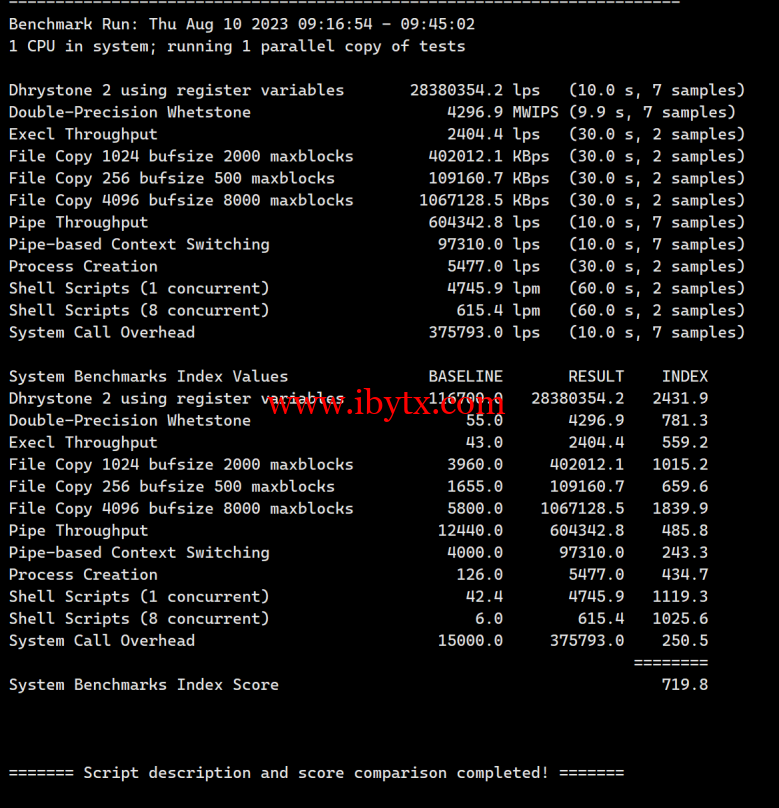 Unix bench Mark性能跑分测试: