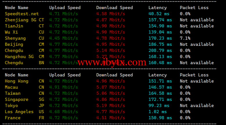 2023/09/04 08:49:26 正在测试三网回程路由... 2023/09/04 08:49:27 北京电信 219.141.136.12 联通9929[优质线路] 2023/09/04 08:49:27 北京联通 202.106.50.1 联通9929[优质线路] 2023/09/04 08:49:27 北京移动 221.179.155.161 联通9929[优质线路] 2023/09/04 08:49:27 上海电信 202.96.209.133 联通9929[优质线路] 2023/09/04 08:49:27 上海联通 210.22.97.1 联通9929[优质线路] 2023/09/04 08:49:27 上海移动 211.136.112.200 联通9929[优质线路] 2023/09/04 08:49:27 广州电信 58.60.188.222 联通9929[优质线路] 2023/09/04 08:49:27 广州联通 210.21.196.6 联通9929[优质线路] 2023/09/04 08:49:27 广州移动 120.196.165.24 联通9929[优质线路] 2023/09/04 08:49:27 成都电信 61.139.2.69 联通9929[优质线路] 2023/09/04 08:49:27 成都联通 119.6.6.6 联通9929[优质线路] 2023/09/04 08:49:27 成都移动 211.137.96.205 联通9929[优质线路] 2023/09/04 08:49:27 湖南电信 36.111.200.100 联通9929[优质线路] 2023/09/04 08:49:27 湖南联通 42.48.16.100 联通9929[优质线路] 2023/09/04 08:49:27 湖南移动 39.134.254.6 联通9929[优质线路]
