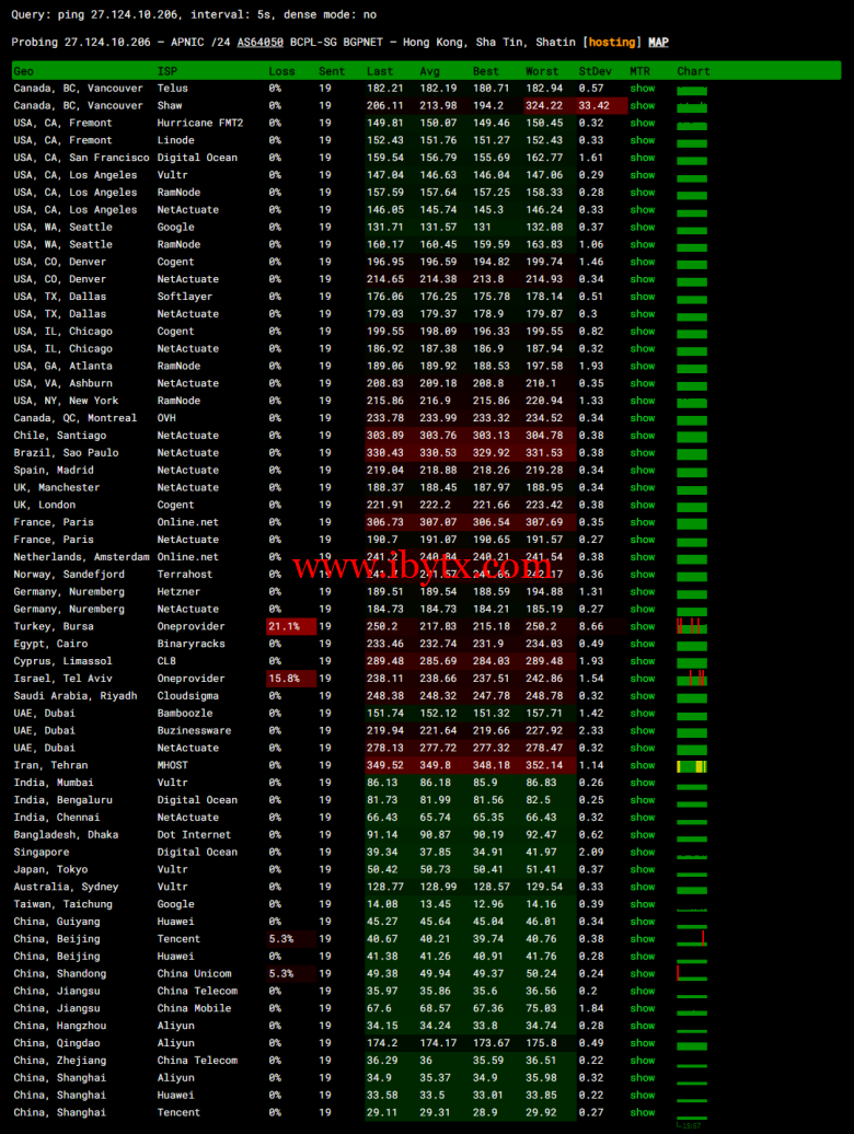 可以看到全球各地网络稳定性还是相当不错的,不管是海外节点还是国内节点基本都没有丢包的情况,网络还是相当可以的。HopeIDC在网络稳定性和性能方面具有先进的硬件设施、高性能的数据中心网络、多重带宽接入、带宽保障与流量控制、网络质量监控与故障自愈以及完善的技术支持团队等优势,能够为客户提供稳定可靠的网络基础设施服务。