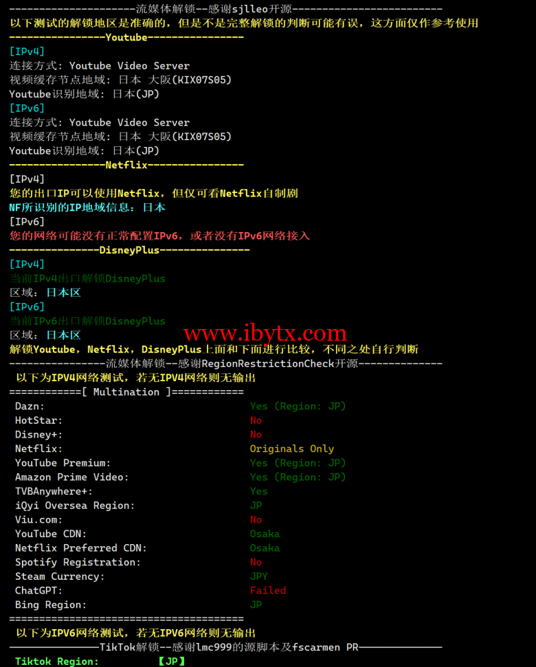 流媒体解锁测试: