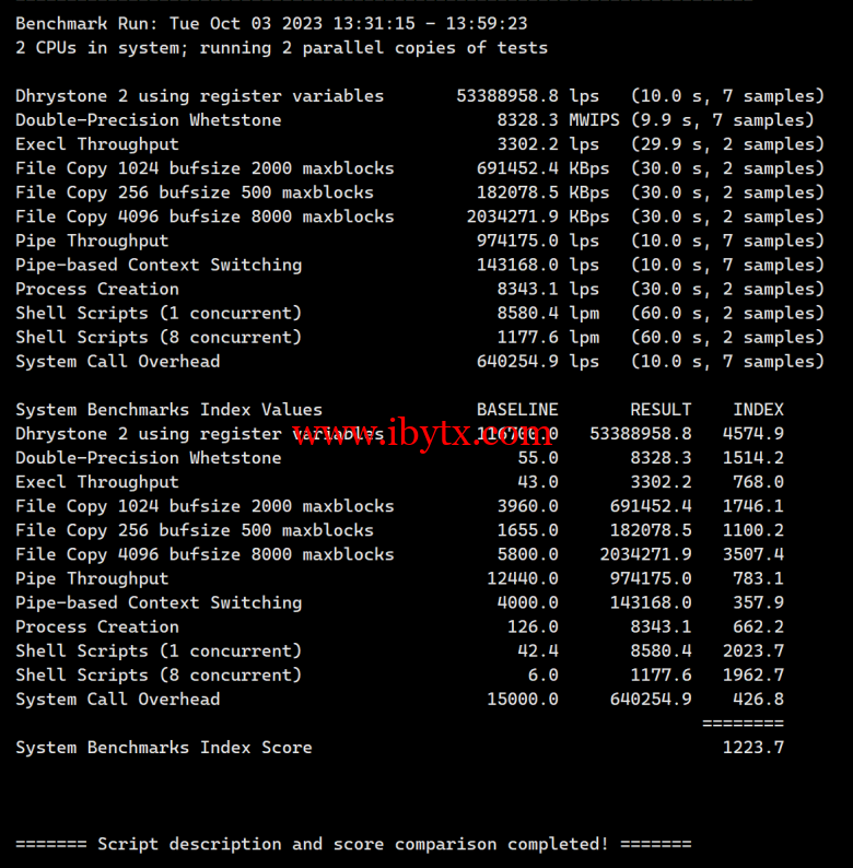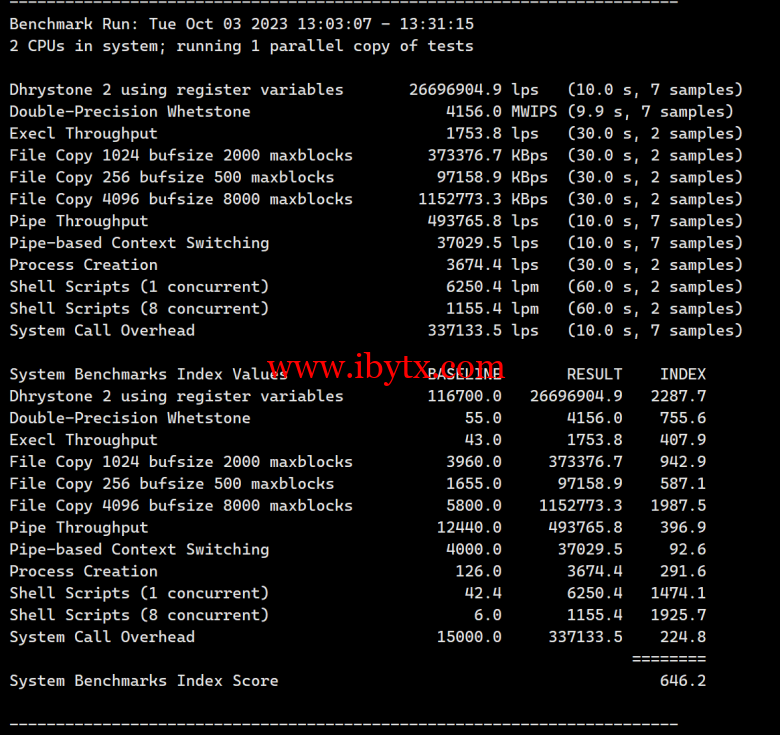 Unix bench Mark性能跑分测试: