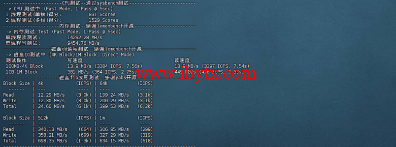 CPU 内存 硬盘测试数据,磁盘fio表现很不错