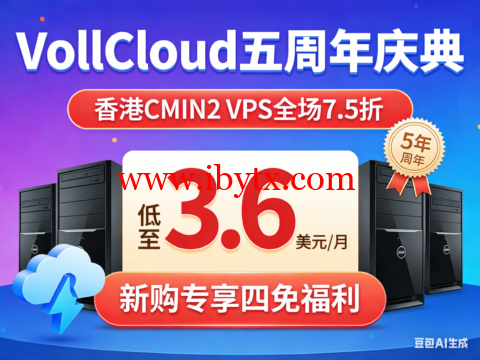 本次 VollCloud 五周年庆典,我们全面加码福利力度,诚意回馈新老客户:新购 VPS 产品,可专享7.5 折优惠,并免费领取四大专属福利;老客户年付产品续费,尊享五大免费权益,含每月 500G 起免费流量、9.5 折续费优惠码等重磅好礼。本次周年庆无任何参与门槛,所有年付产品完成续费即可享受福利,优惠力度远超往届,续费专享福利更是难得一遇,良机切勿错过!售后承诺:支持三日内无条件退款,消费更安心;线路优势:采用优质 CMIN2 线路 —— 电信、联通去程走 163 线路,回程 CMI 直连;移动去程、回程均为 CMIN2 线路,全国低延迟、传输高速,是移动用户的优选线路。