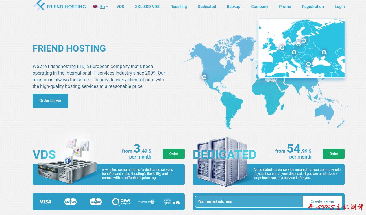friendhosting为了开拓中国市场,网站在“俄语、德语、法语、英语”之后又新增了中文页面,支付方式支持信用卡、PayPal、支付宝等多种,方便国人购买!friendhosting的VPS基于KVM虚拟,纯SSD,不限制流量,支持自定义ISO…
