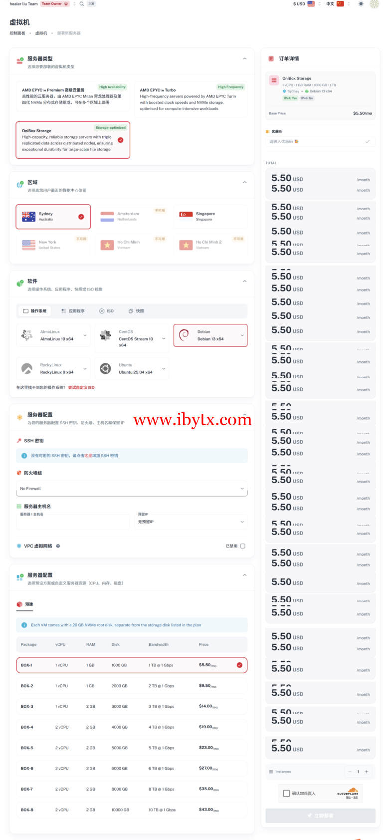 - BOX-1 配置:仅需 $33 / 年,即可享 1 核 CPU / 1G 内存,搭配 20G NVMe + 1TB HDD 存储组合,更配备 1TB 流量 @1Gbps 高速带宽。