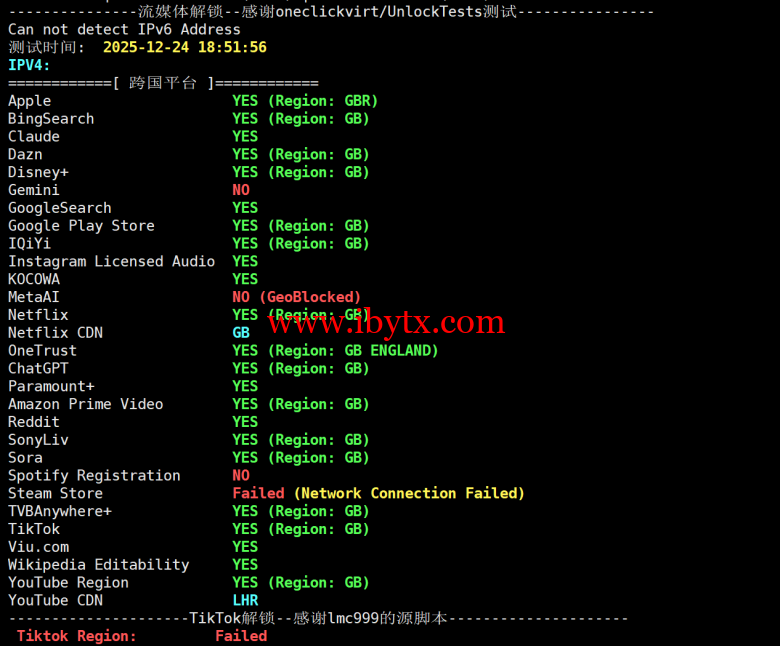 流媒体解锁测试: