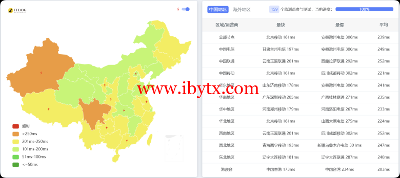 国内三网ping实测: