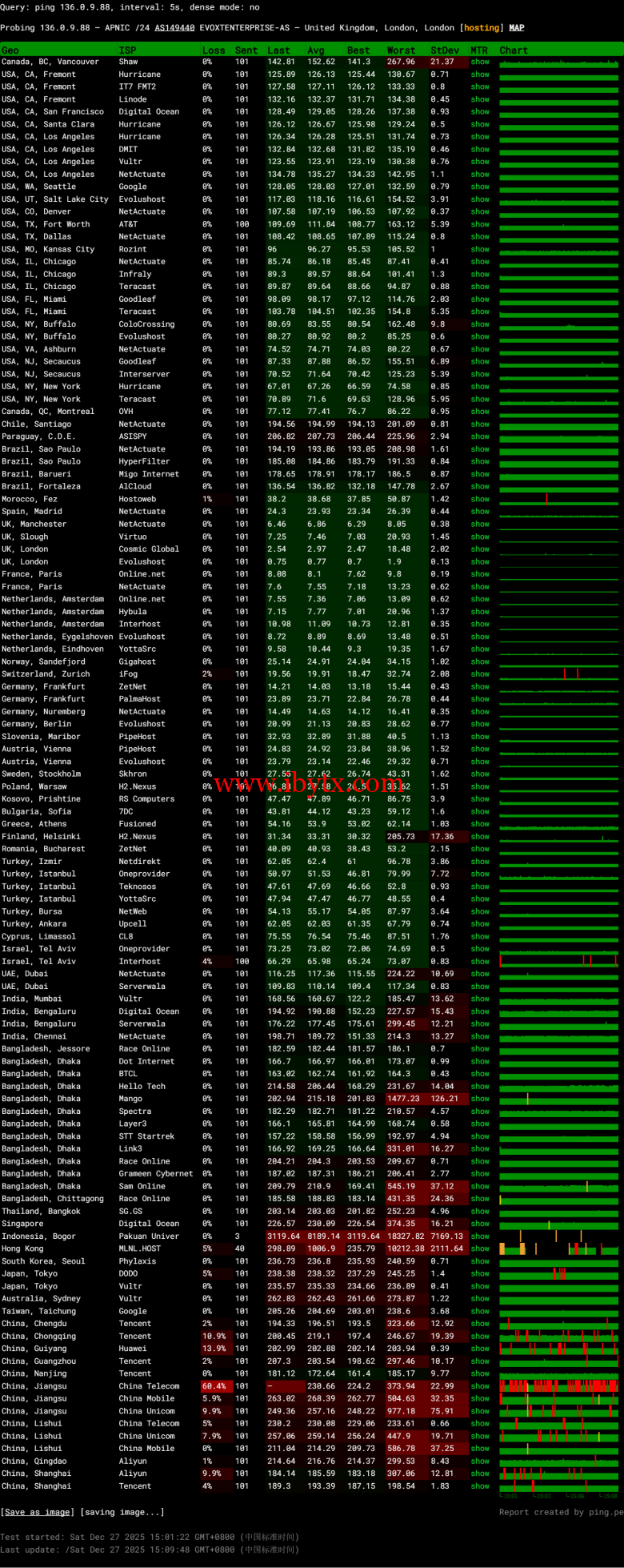 全球丢包测试: