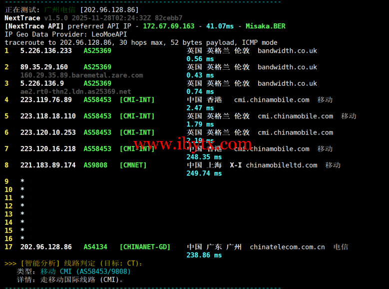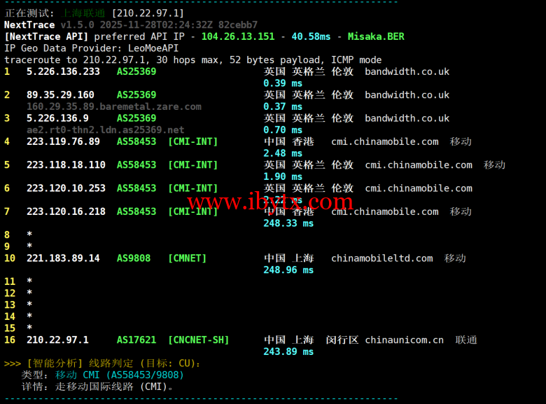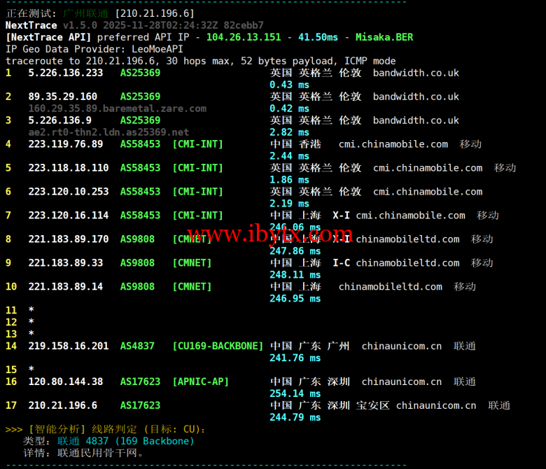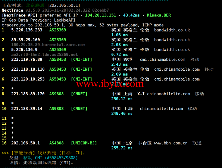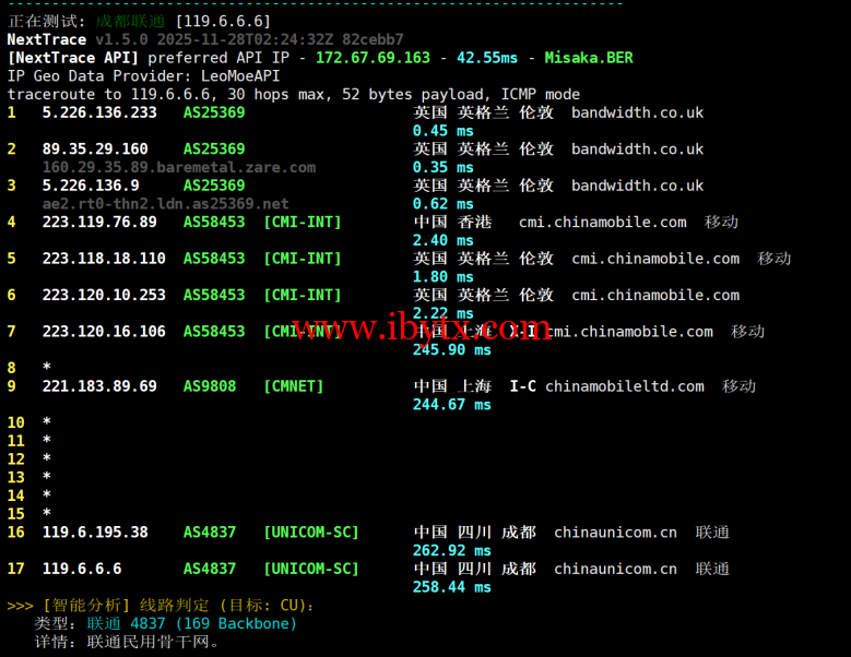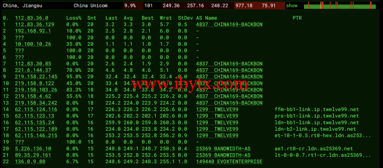 联通回程测试: