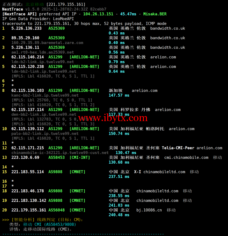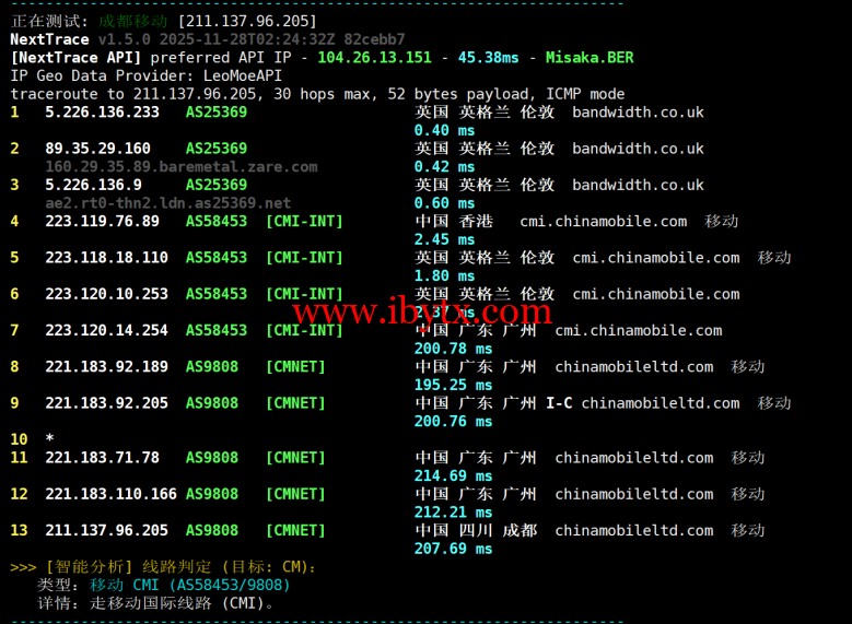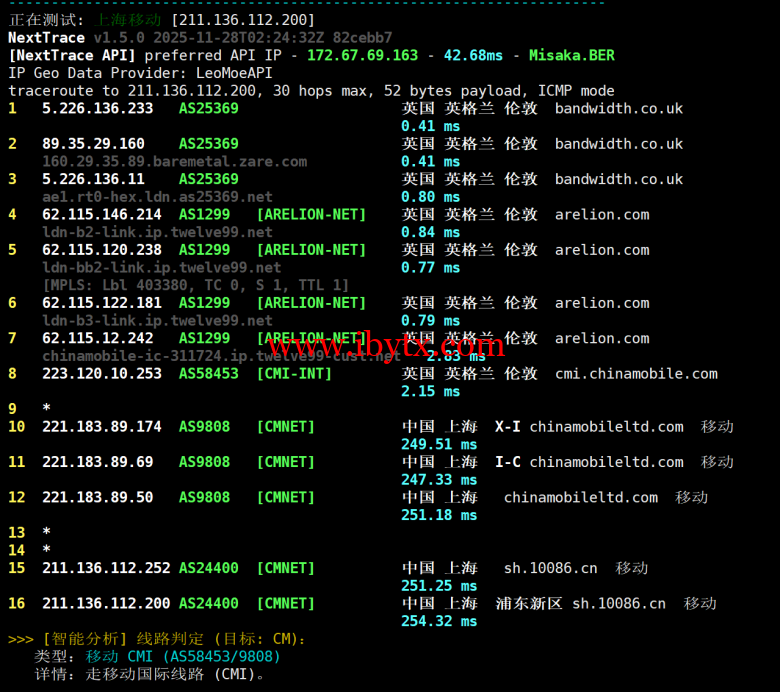 Evoxt 英国伦敦机房的深度测评!该机房上游接入 Bandwidth、Twelve99 等优质骨干线路,核心亮点在于回程线路配置 —— 三网以移动 CMI 线路为主,这在欧洲机房中实属少见,为跨境访问提供了稳定基础。