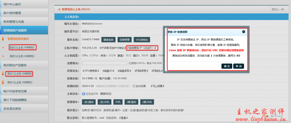 HostYun VPS选购、管理下面一个图片就可以说明了,点击上面的购买链接进入到官网后,什么都别管,直接点右上角的“用户中心”注册账号并登陆就是如下图了!!!相信后面的操作难不到你了吧。