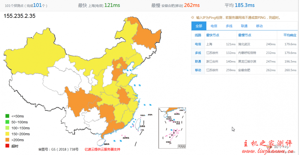电信线路 | 58 | 浙江杭州(天翼云) 128.6 毫秒 | 江苏常州(电信) 276.3 毫秒 | 180.2 毫秒 |