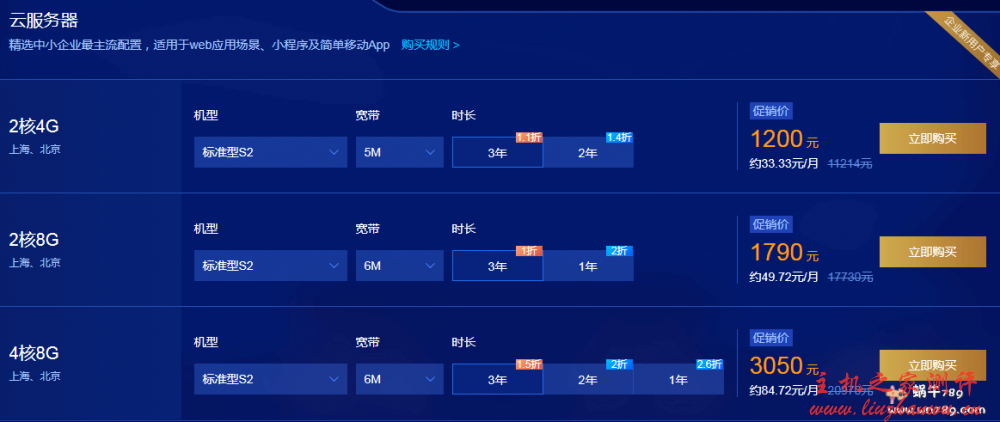 - 1核2G云服务器 标准型S4 99元/1年