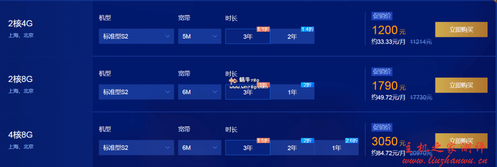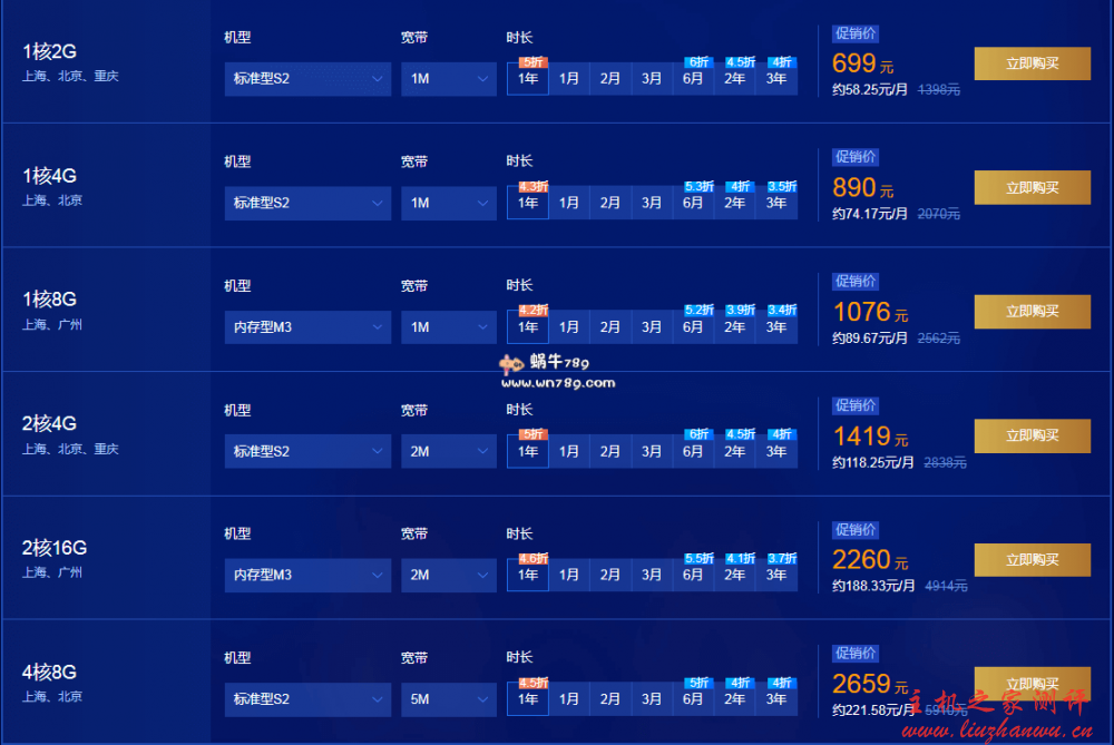 - 13点:1核2G1M99元/1年,2核4G3M998元/3年,2核4G6M1499元/3年